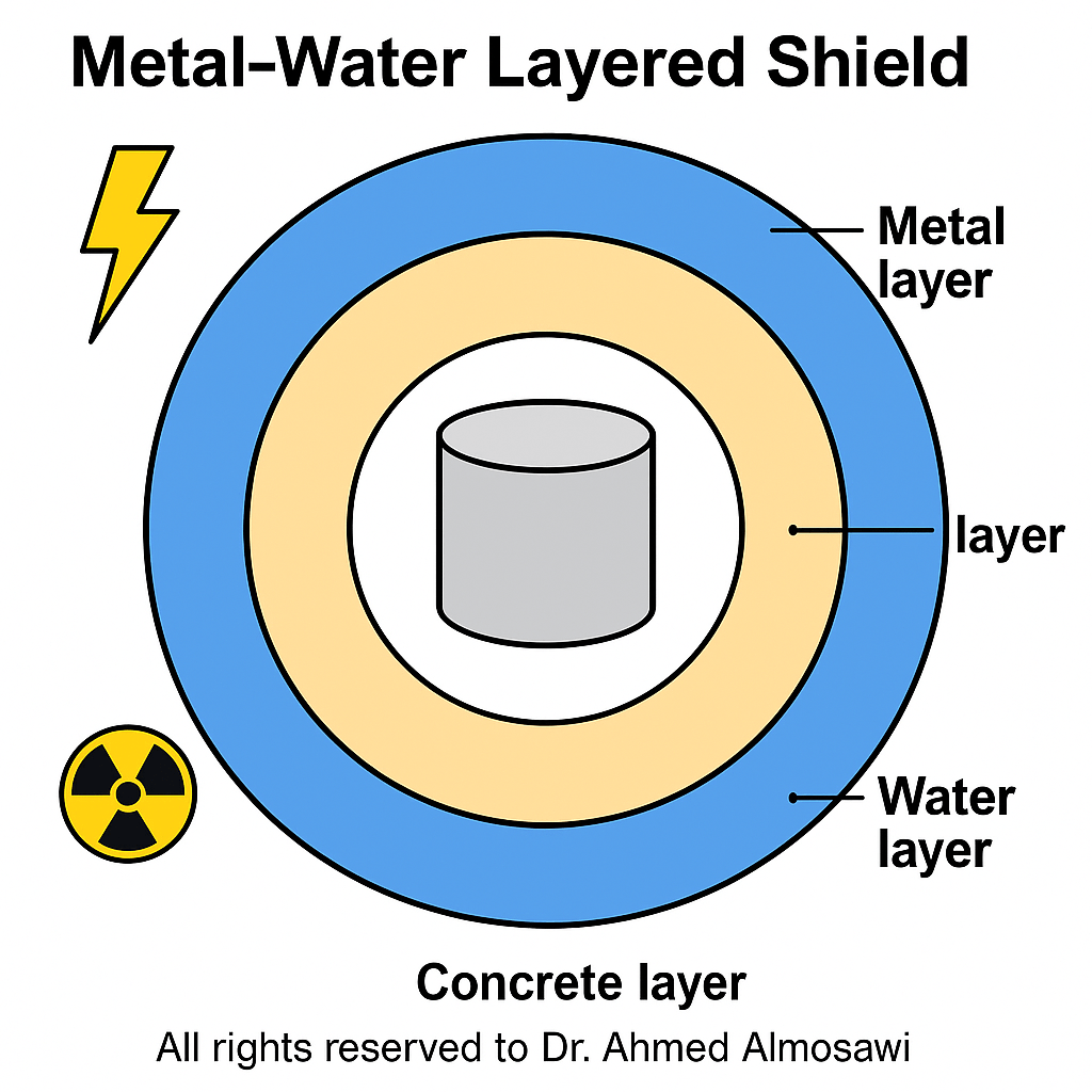 In the modern era, nuclear and electromagnetic threats are steadily increasing, necessitating advanced engineering solutions to protect vital and military facilities from destruction or complete electronic paralysis. The multi-layered metal–water shield represents a promising theoretical solution, providing near-absolute immunity against radiation, explosions, electromagnetic interference, and remote-controlled attacks. In this research, a hybrid shield will be designed and simulated, combining layers of heavy metals, water, sand, and lead, with its performance evaluated under various attack scenarios.