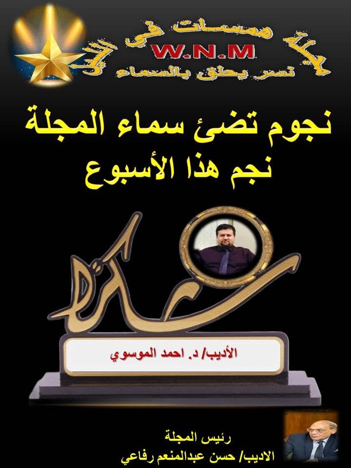 - أنا أحمد الموسوي، شاعر وفيلسوف وكاتب عراقي أؤمن بأن الكلمة الصادقة هي انعكاس لجوهر الإنسان، وأن الشعر هو جسرٌ بين الروح والوجود. وُلدتُ على ضفاف الألم، فكتبتُ من وهج المعاناة أملاً، وجعلتُ من الحرف وسيلةً لتطهير النفس وإحياء الفكر.